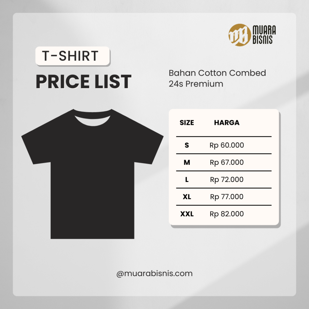 Produk Muara Bisnis menggunakan bahan berkualitas Cotton Combed 24s Premium, Adem, Lembut dan memberikan kenyaman kepada Anda ketika memakainya dan cocok di gunakan untuk iklim di indonesia
